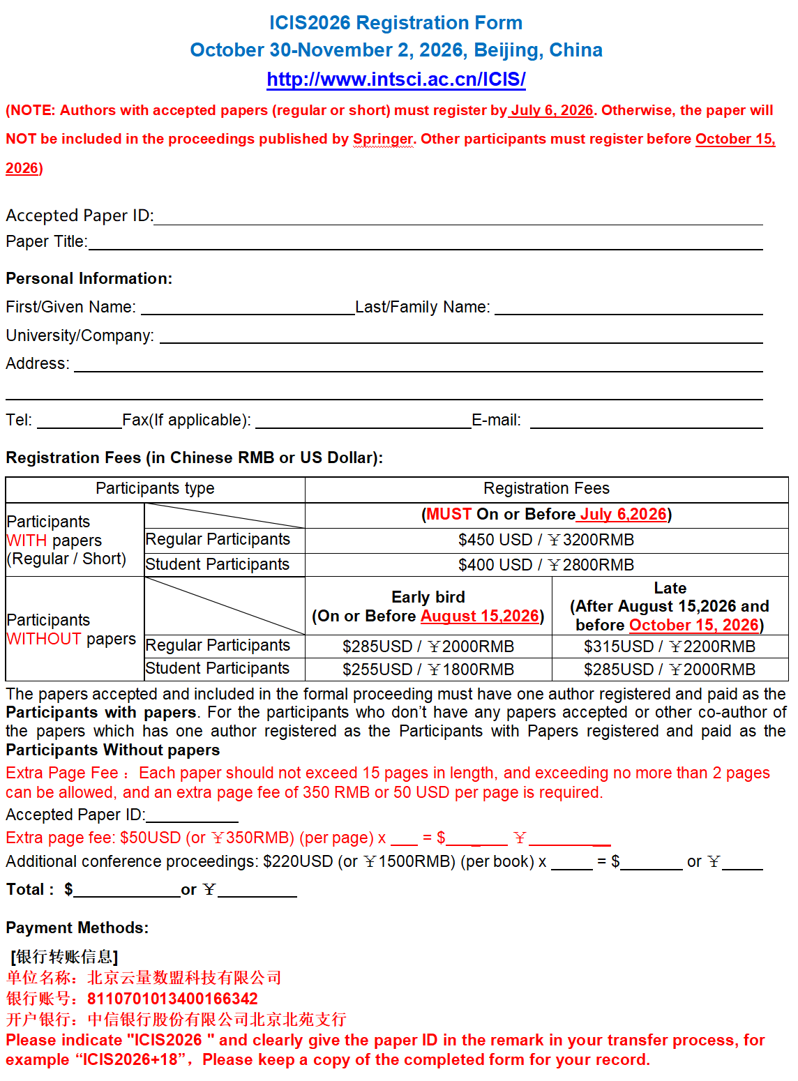 ICIS2026 Call For Papers